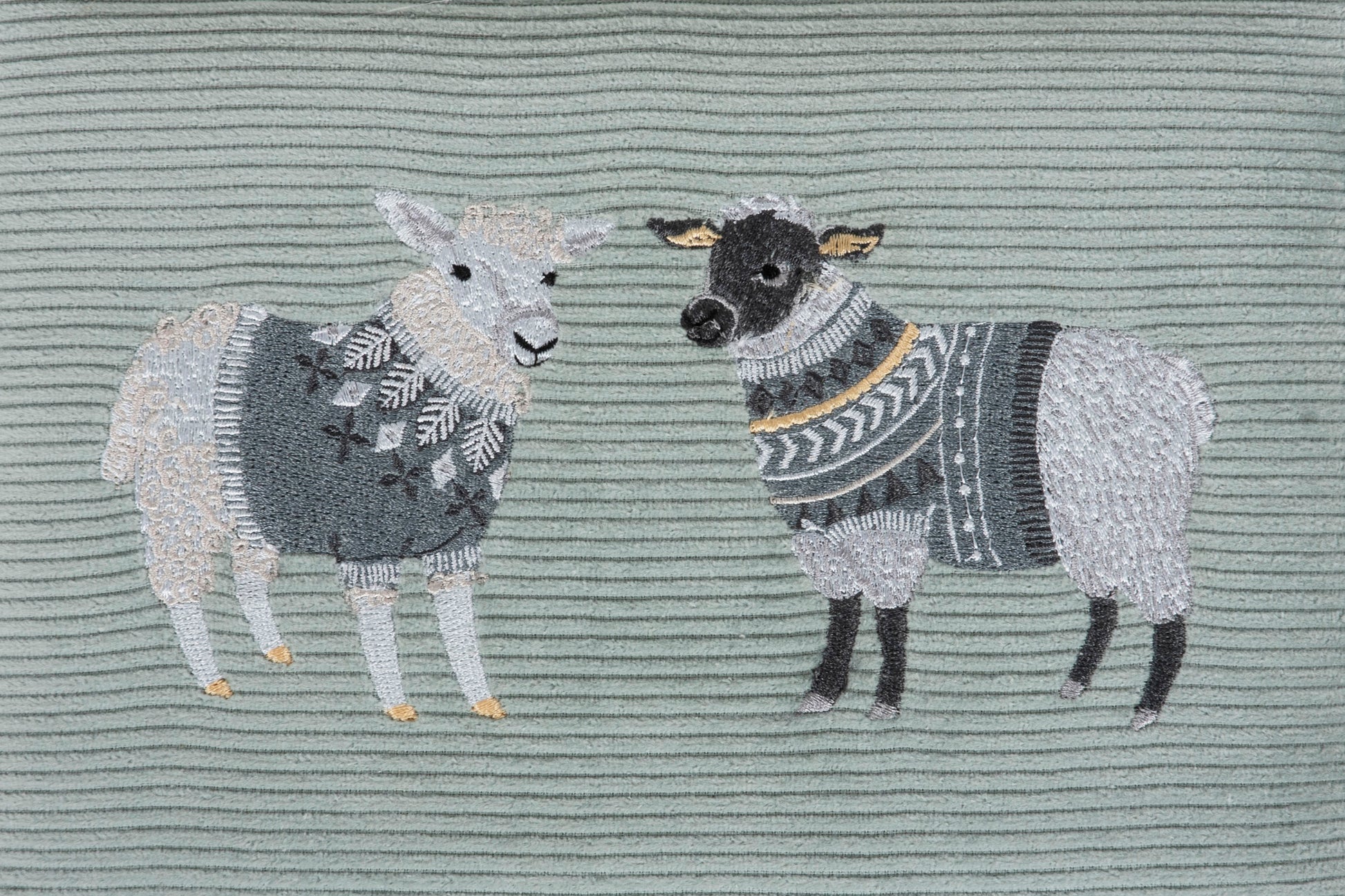 Medium-sized sewing box made from cotton corduroy with embroidered detail on the lid.