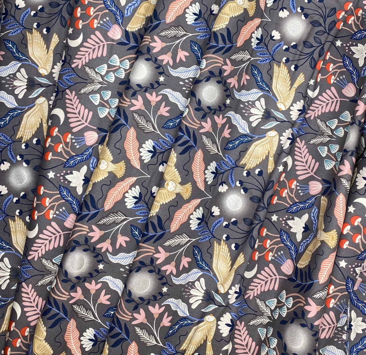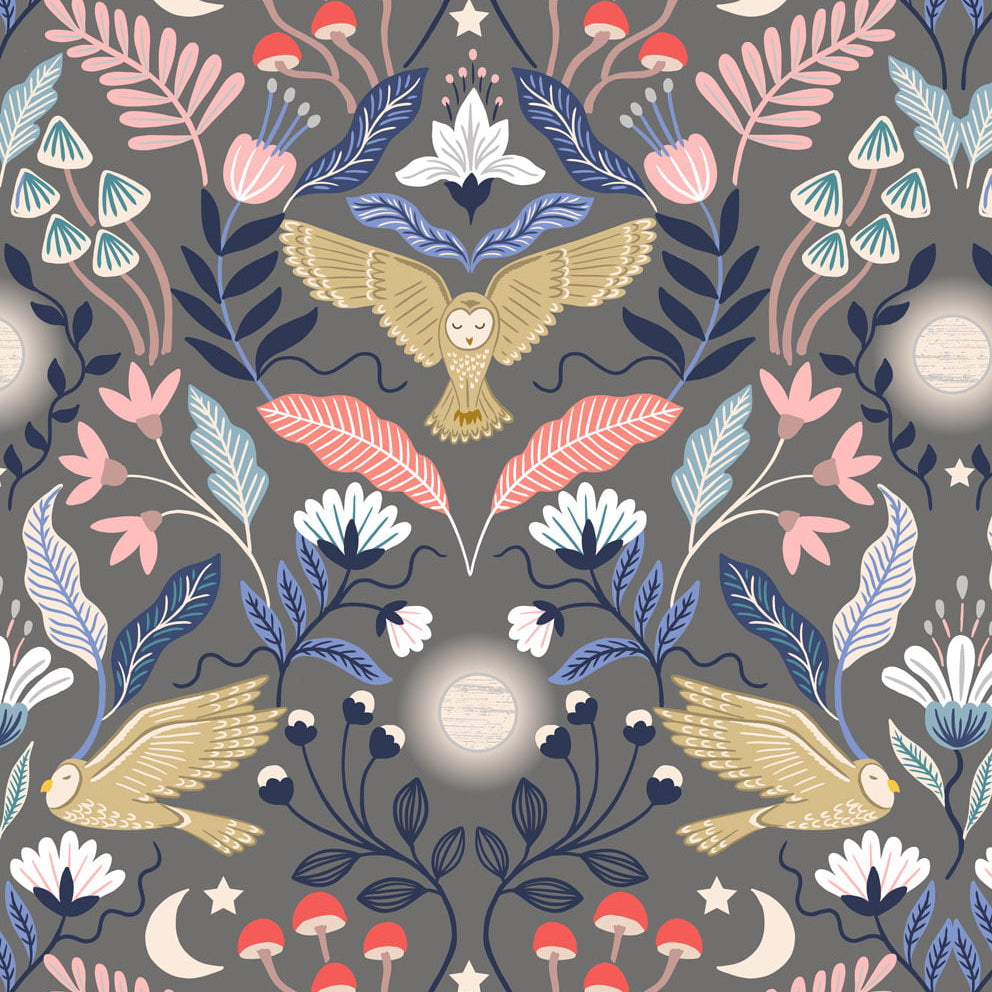 Enchanted owl on dark grey with silver metallic